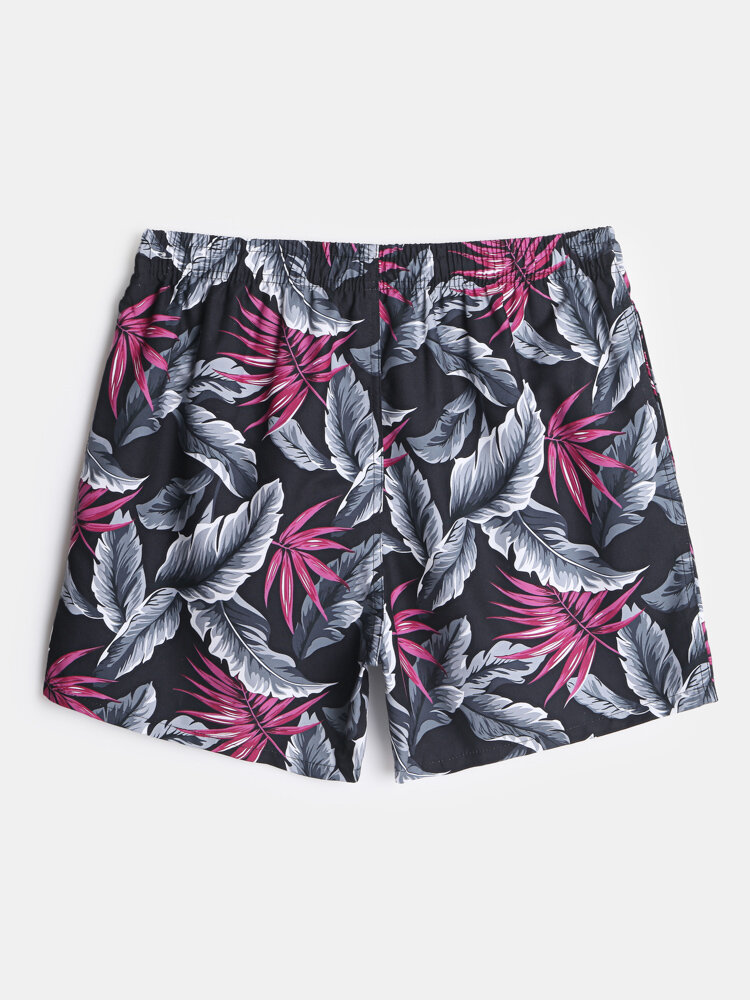 Mens Tropical Leaf Print Mesh Liner Drawstring Board Shorts