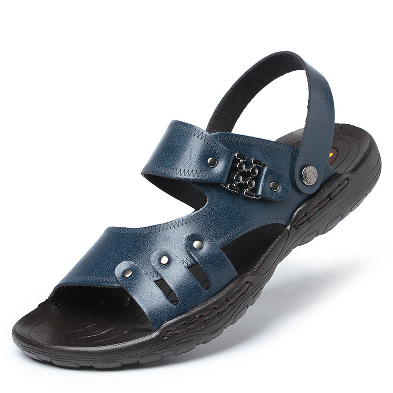 Menico Men Retro Leather Stitching Non Slip Hook Loop Casual Sandals
