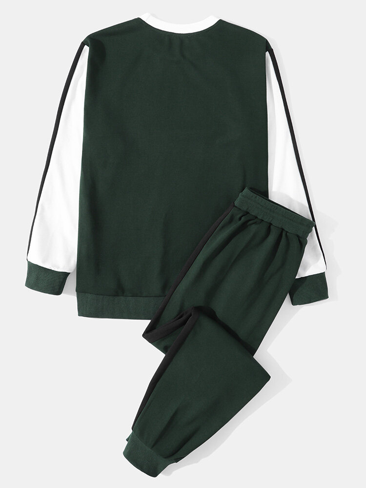Mens Contrast Trims Patchwork Zip Front Towelling Street Two Pieces Outfits