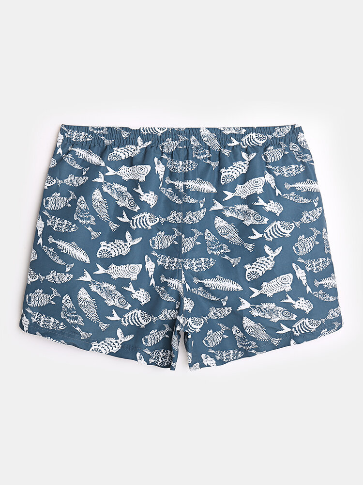 Mens Vintage Fish Pattern Quick Dry Swim Trunk With Mesh Lined