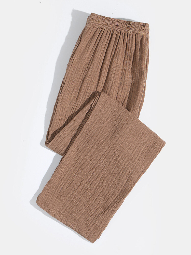 Lightweight Solid Color Drawstring Pockets Cotton Linen Loungewear Bottoms