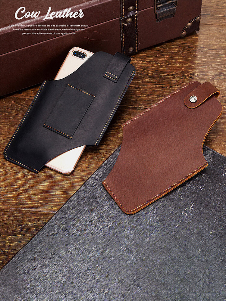 Vintage Genuine Leather 6 Inches Outdoor Phone Bag Waist Bag For Men