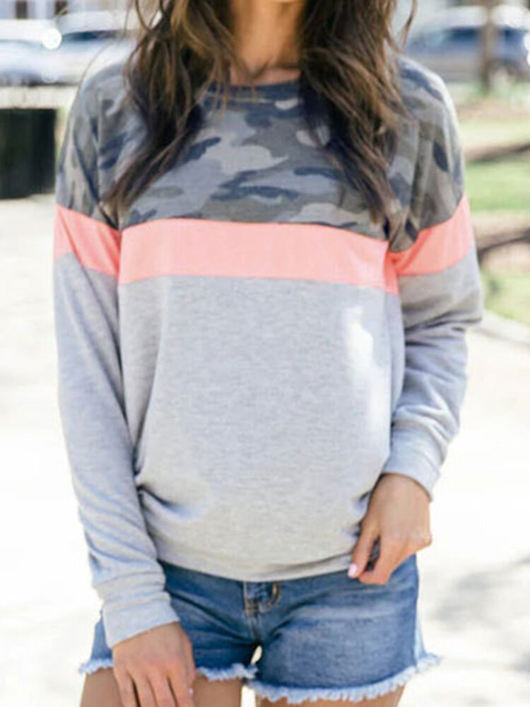 Camouflage Patchwork Long Sleeves Casual Sweatshirts for Women
