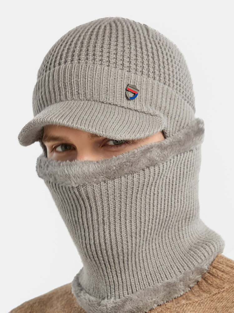 Men 2PCS Plus Velvet Thick Winter Outdoor Ear Neck Protection Headgear Scarf Knitted Hat Beanie