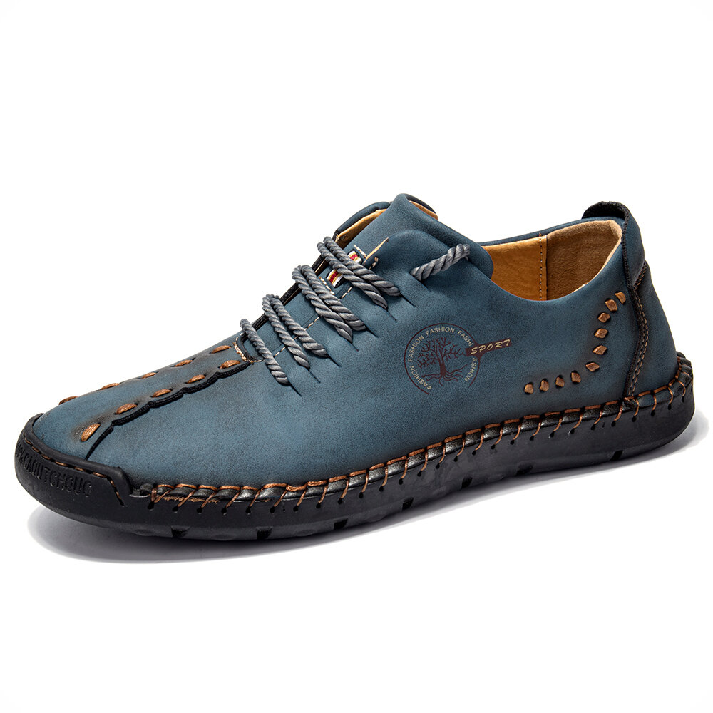 Menico Men Hand Stitching Non Slip Soft Sole Casual Leather Shoes
