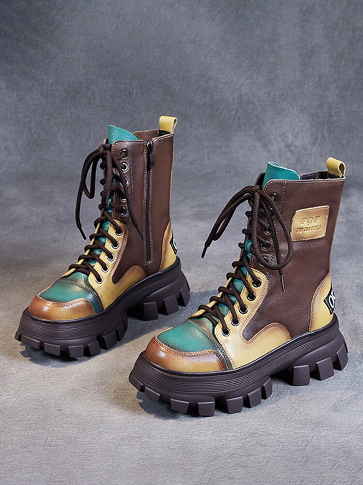 Women Casual Colorblock Side Zipper Comfy Platform Tooling Boots