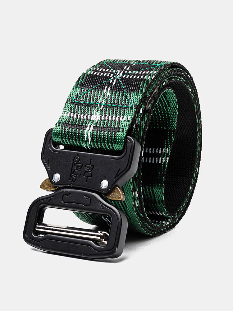 160CM Men’s Plaid Stripe Nylon Military Tactical Waist Belt Sport Pants Buckle With Plate Bucklet