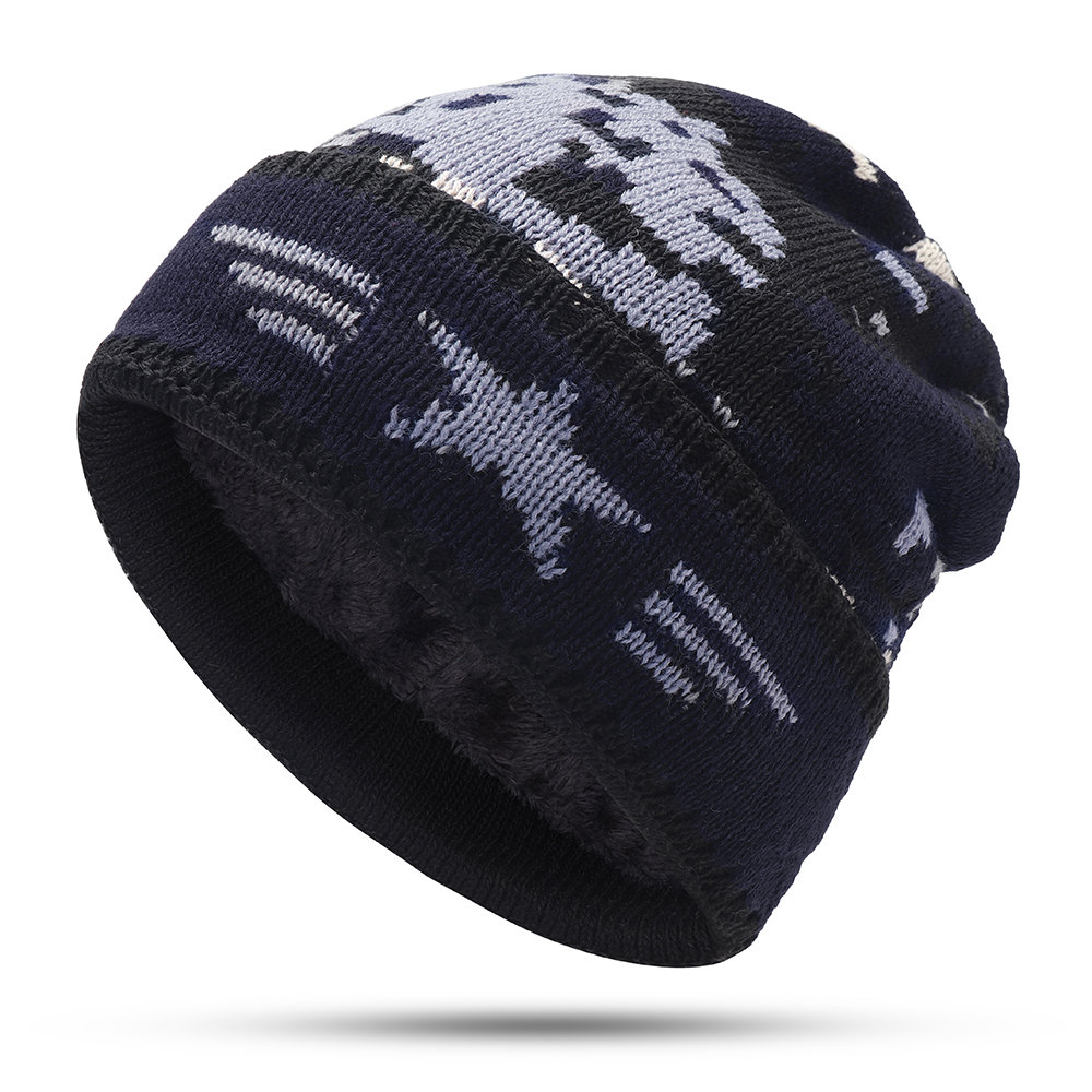 Mens Camouflage Wool Plush Beanie Hat Vintage Good Elastic Vintage Warm Winter Caps