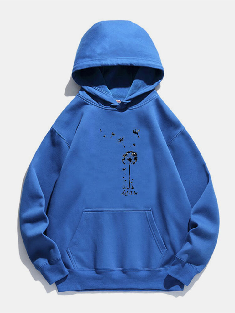 Flower Printed Long Sleeve Drawstring Hoodie For Women