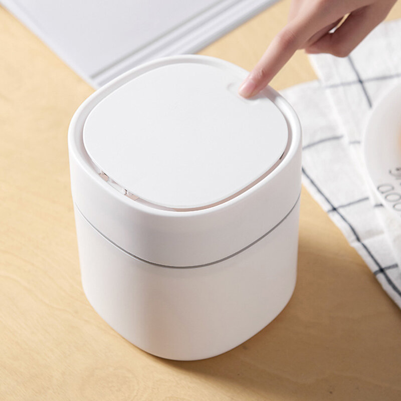 Desktop Trash Can Home Kitchen Desk Paper Basket Tube Covered Debris Storage Cleaning