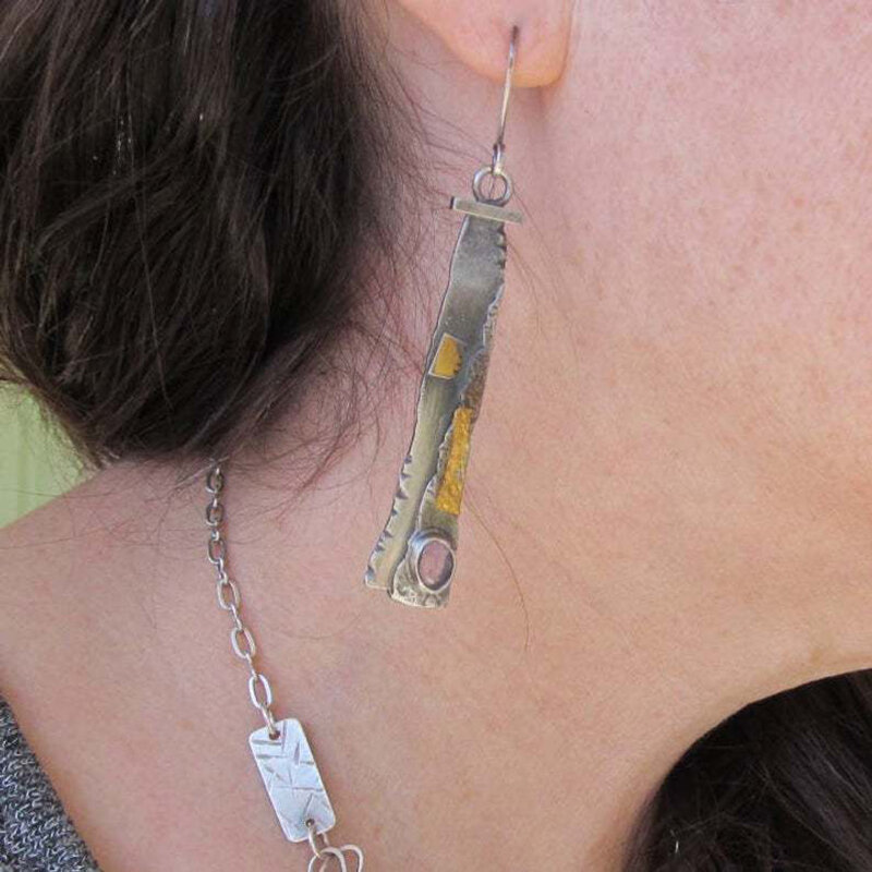 Vintage Sickle Serrated Earrings 925 Silver Plated Amethyst Inlaid Pendant Earrings