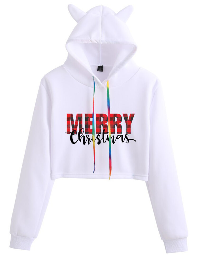 Christmas Letters Print Long Sleeve Casual Hoodie For Women