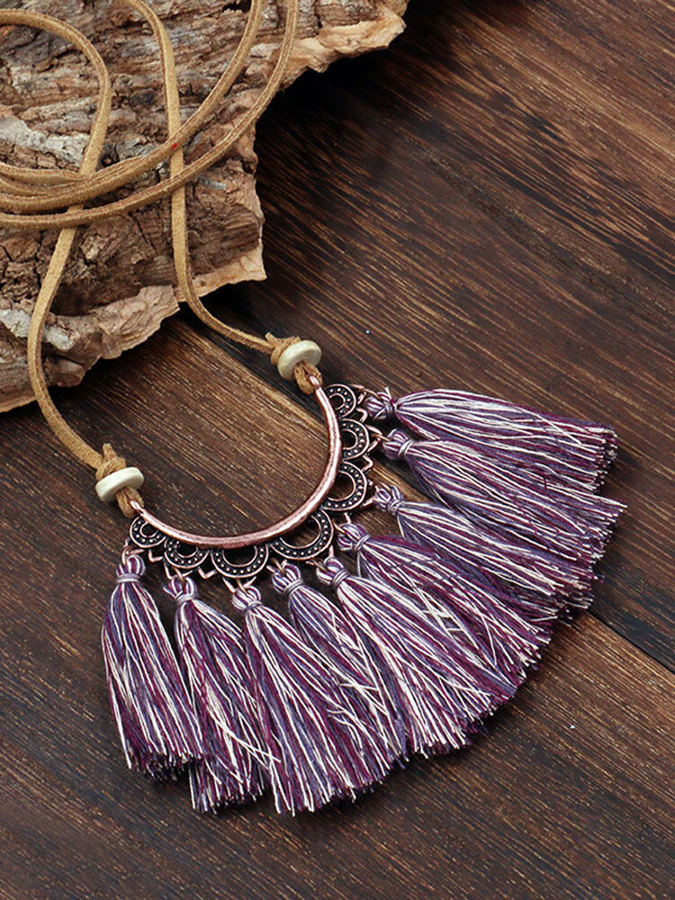 Bohemian Cotton Thread Tassel Long Necklace