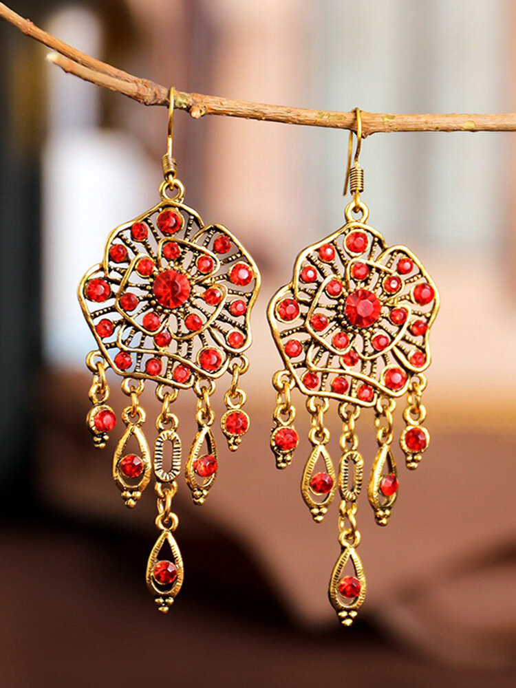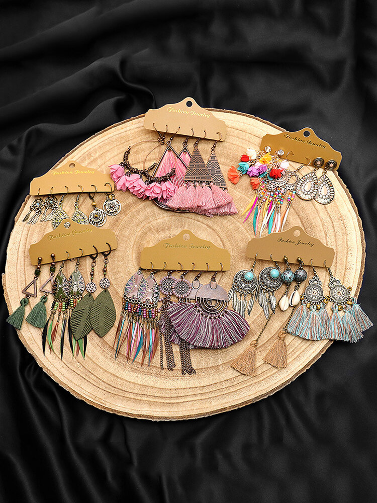 3 Pcs Vintage Irregular Women Earrings Set Drop-Shape Hollow Flower Hand-Woven Tassel Earrings