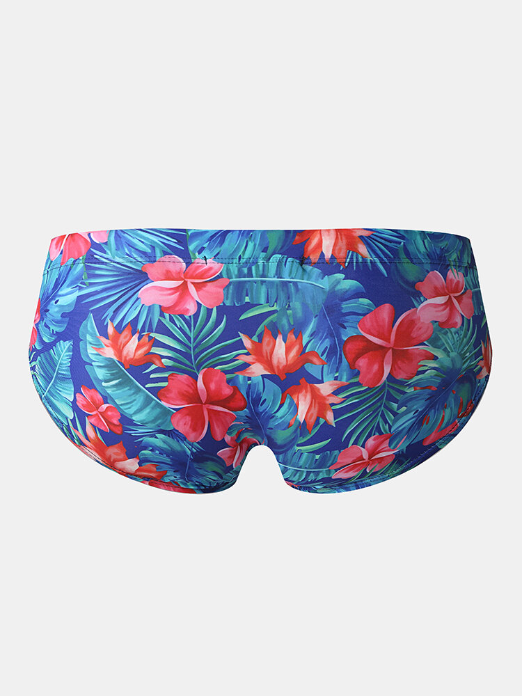 Mens Flower & Plant Leaf Print Quick Dry Drawstring Swim Briefs