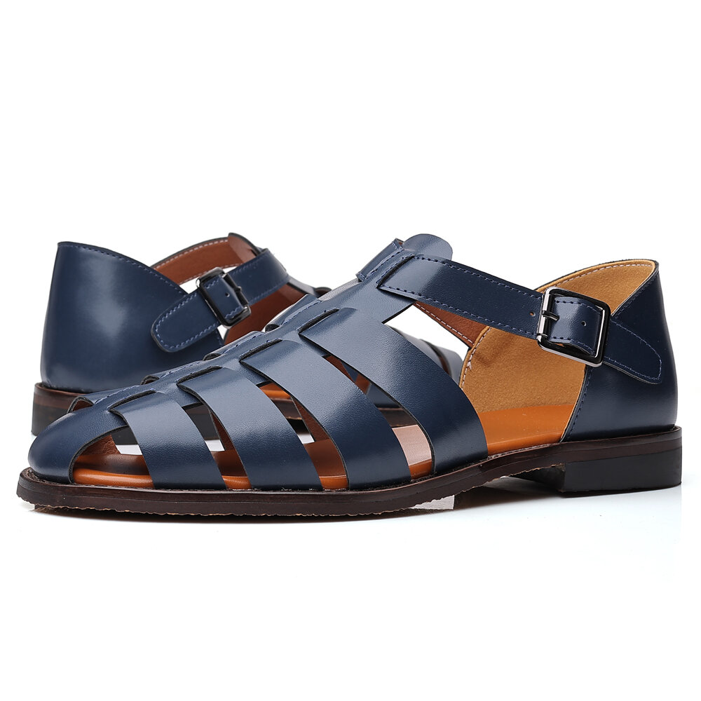 Men Hand Stitching Leather Non Slip Hook Loop Casual Sandals