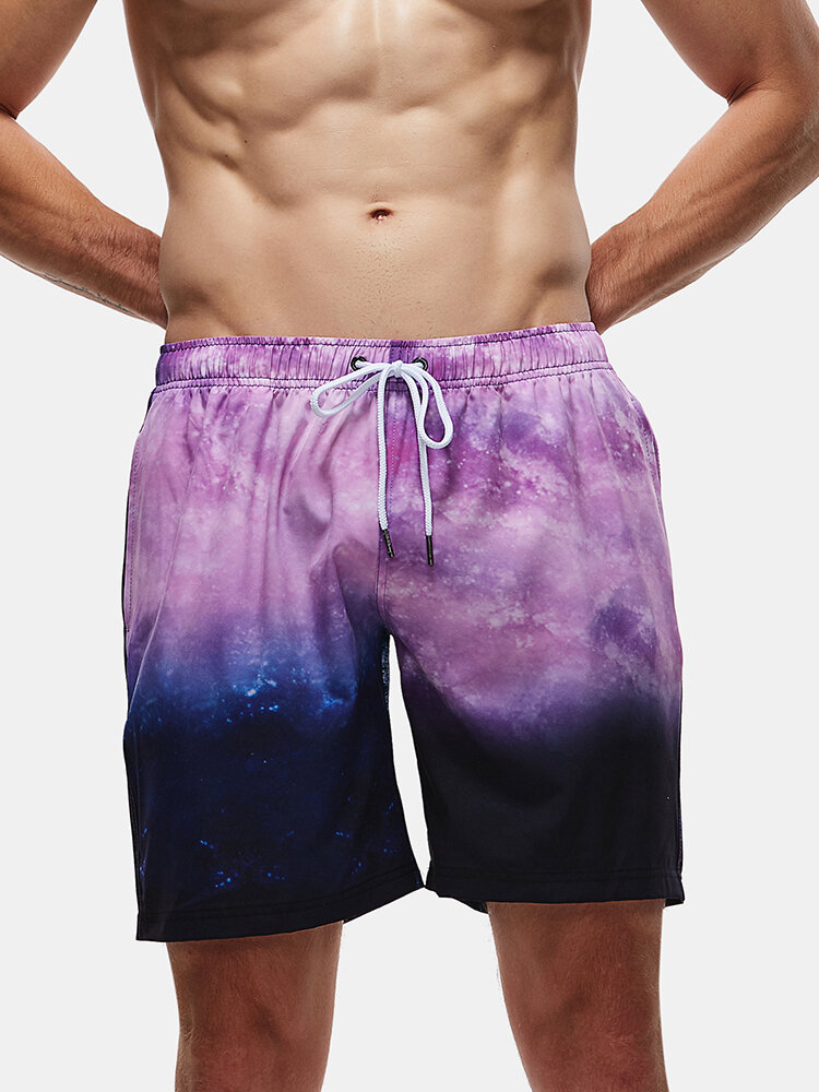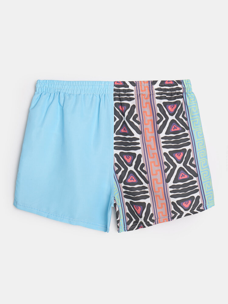 Mens Geo Print Patchwork Quick Dry Holiday Drawstring Swim Trunks