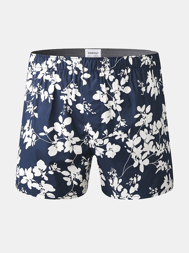 Mens 100% Cotton Floral Print Cozy Mid Waist Lounge Shorts Pajama Bottoms
