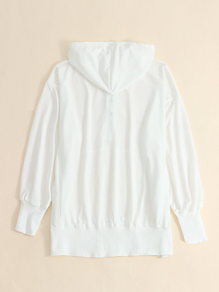 Solid Color Long Sleeve Button Loose Pocket Women Hoodie