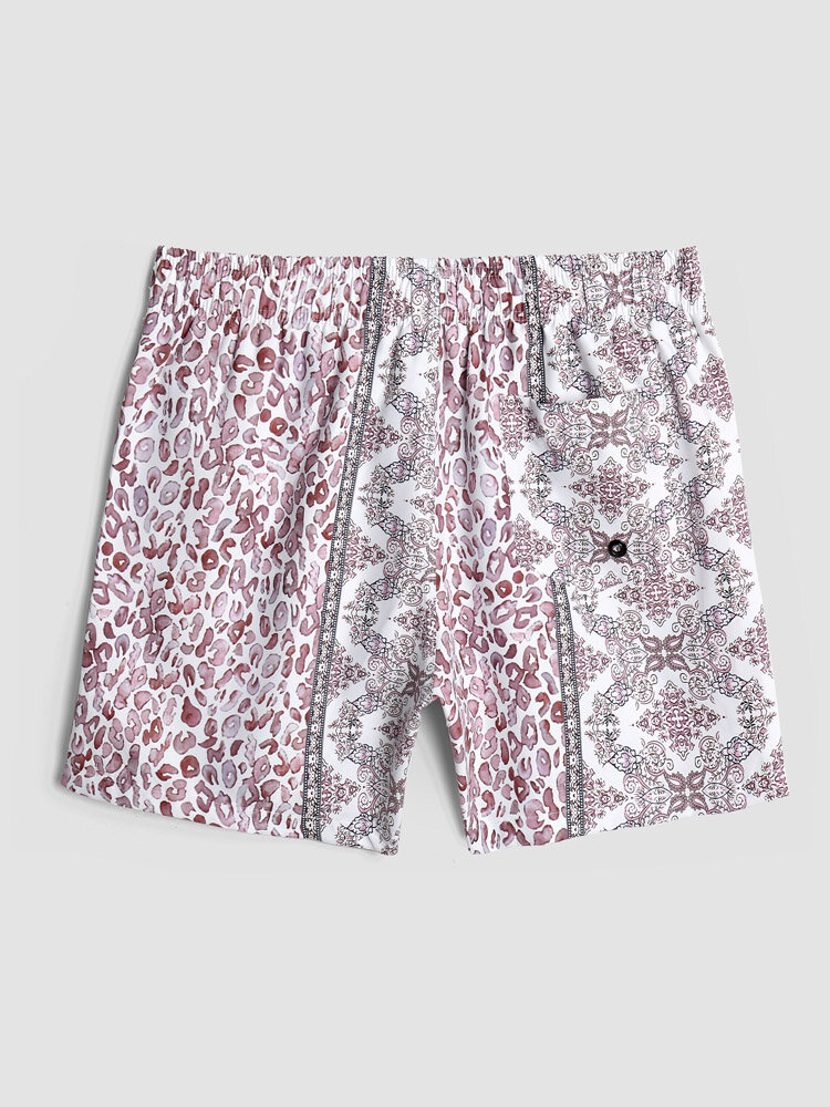 Men Scarf Print Patchwork Quick Dry Elastic Waist Board Shorts With Liner