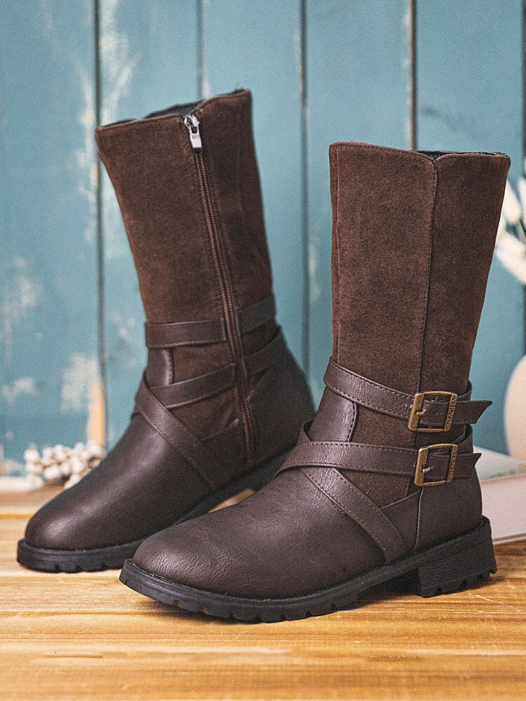 Large Size Women Buckle Design Side Zipper Casual Mid Calf Boots