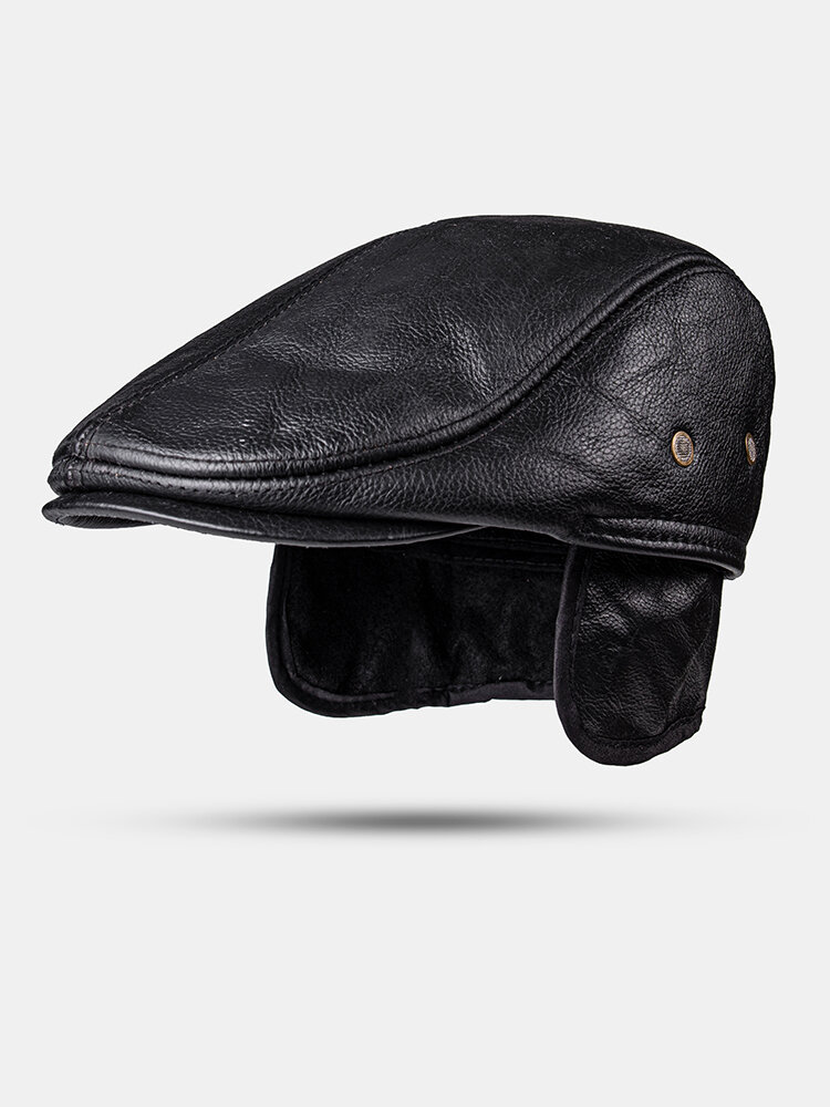 Men Genuine Leather Keep Warm Plus Thickness Cotton Windproof Ear Protection Forward Hat Beret Hatd Duck Tongue Hat