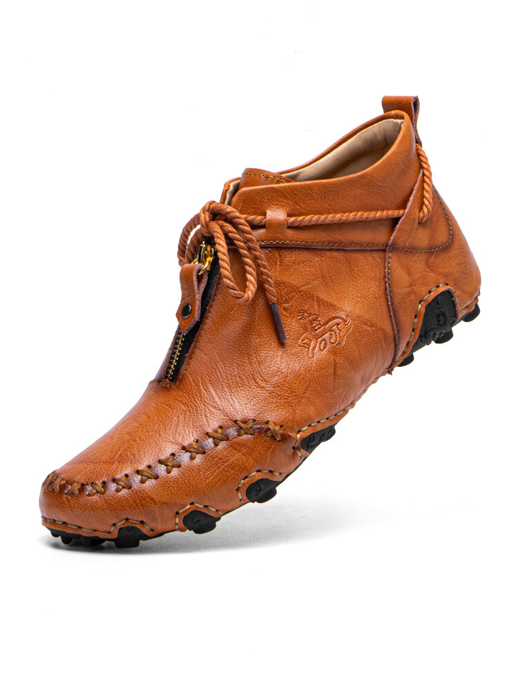 Men Cow Leather Front Zipper Non Slip Soft Hand Stitching Ankle Boots