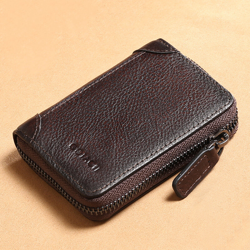 Men Genuine Leather Multi-slots RFID Anti-theft Retro Large Capacity Foldable Card Holder Wallet
