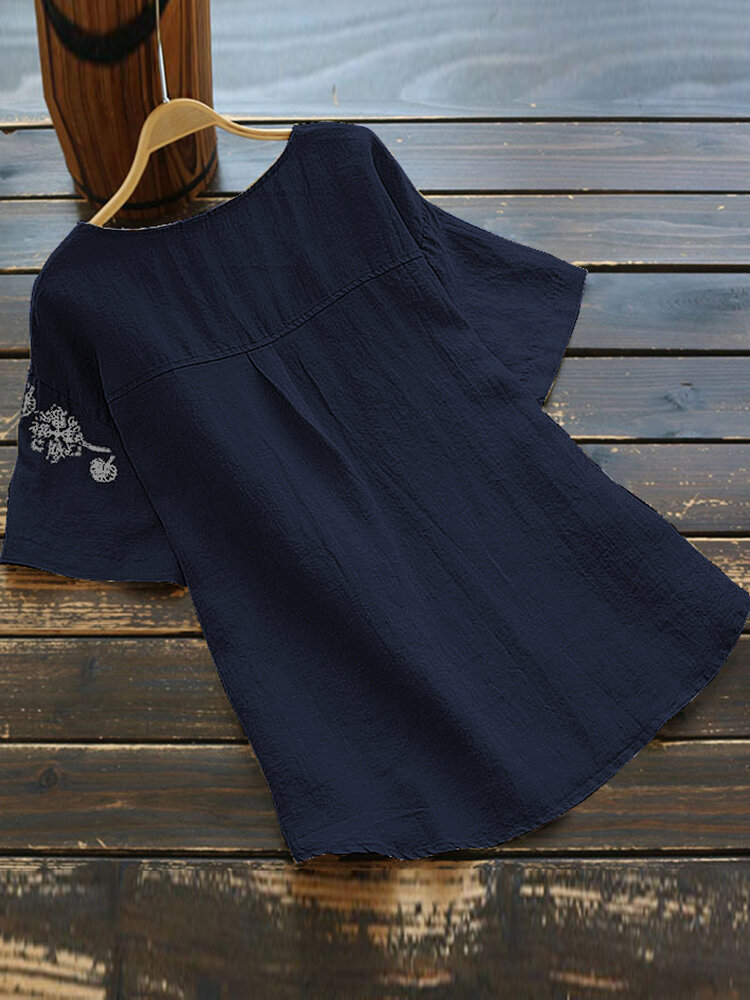 Embroidery Flowers Short Sleeve Plus Size T-shirt