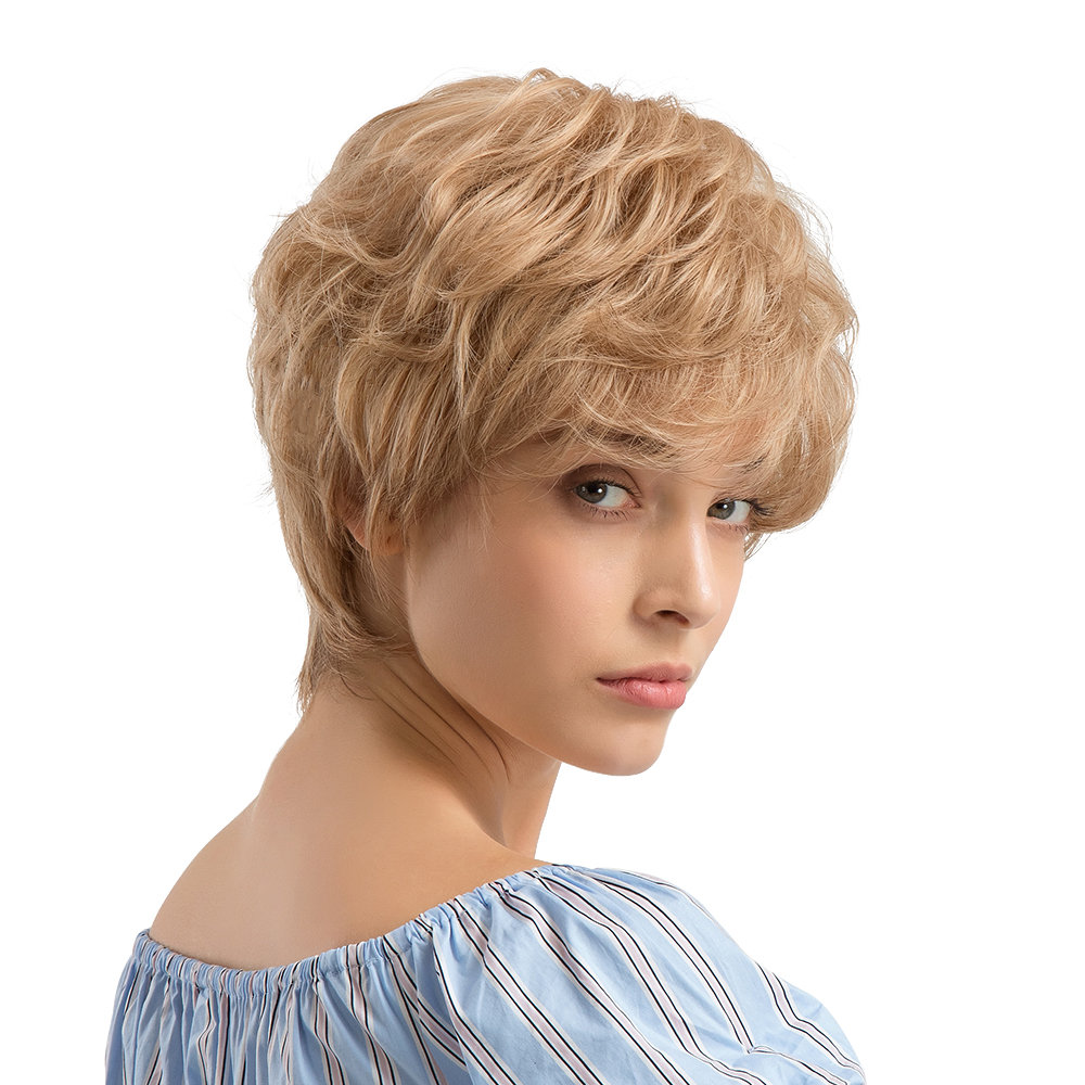 Human Hair Short Wigs Fashion Gold Short Curly Hair Wigs Full Bangs Hair Hearwear For Women