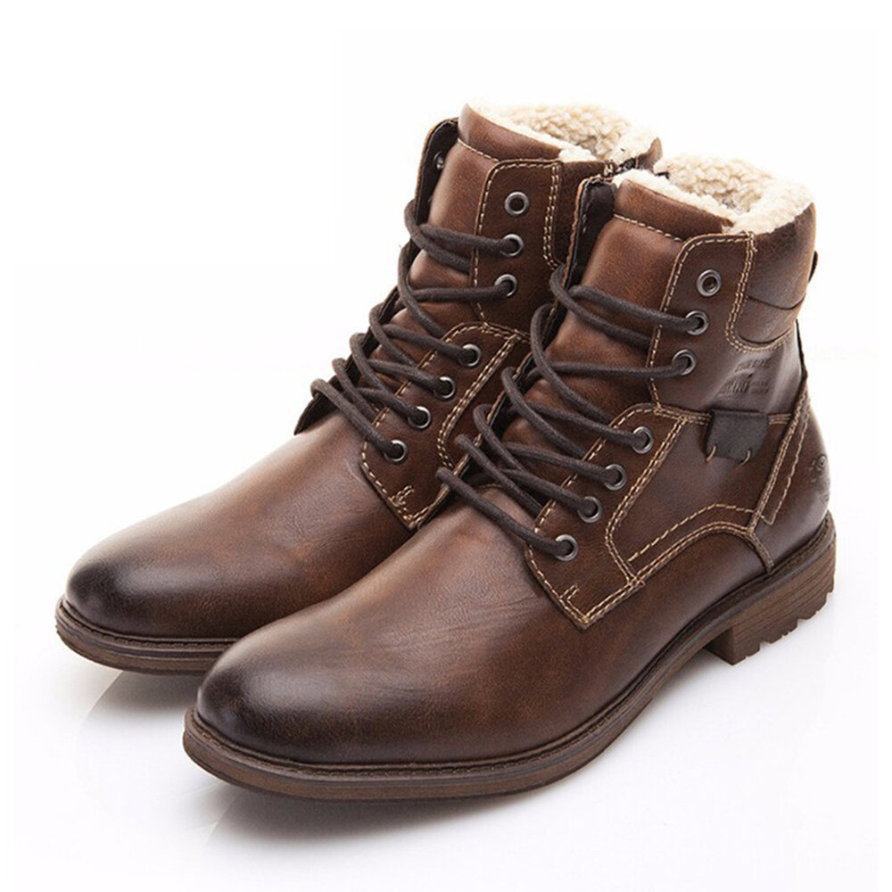 Men Retro Non Slip Warm Lining Lace Up Casual Zipper Ankle Boots