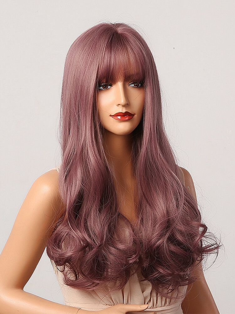 Purple Potato Red Mixed Color Long Water Ripples Curly Hair With Air Bangs Fashion Synthetic Wig For Daily Use And Masquerade