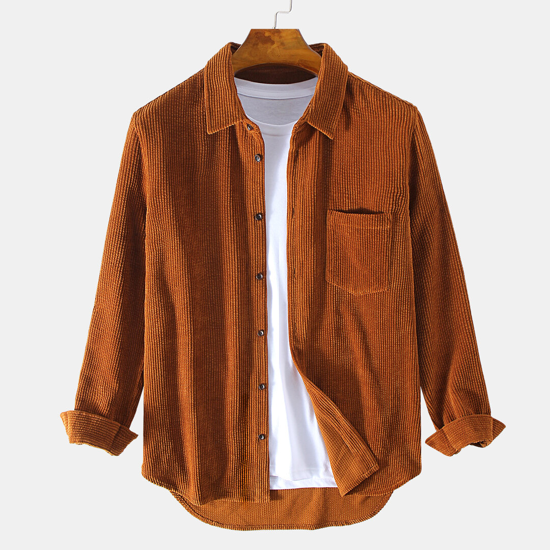 Mens Plain Style Corduroy Solid Color Casual Long Sleeve Shirts