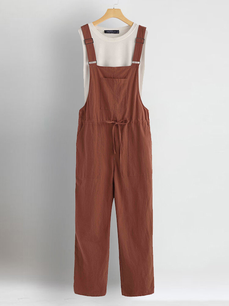 Solid Color Casual Drawstring Elastic Waist Soft Cotton Pants