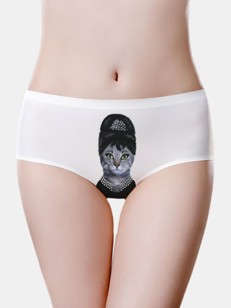 Cat Printed Seamless Mid Waisted Cotton Lining Soft Panties