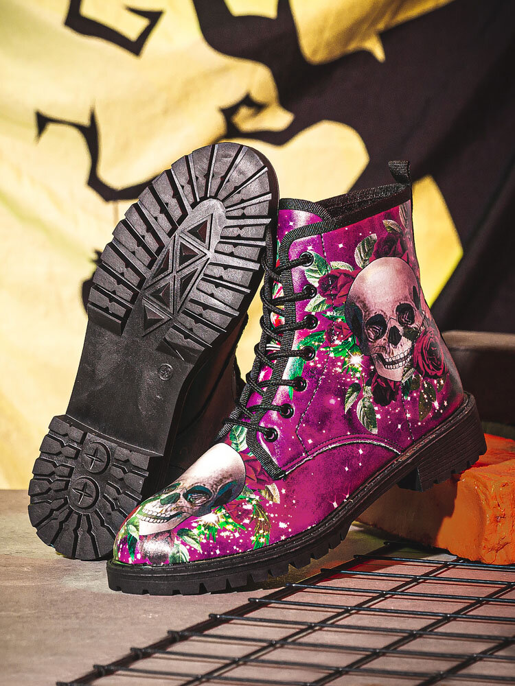 Men Halloween Skull Roses Pattern Stylish Colorful Short-Calf Boots