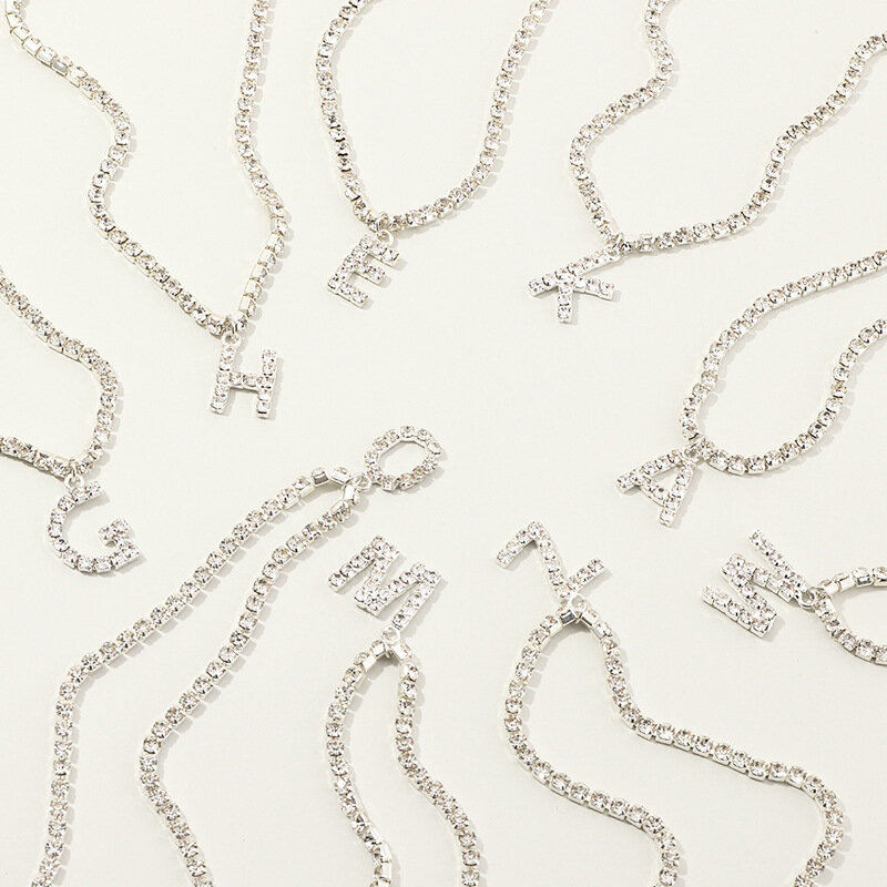 Trendy Classic 26 English Alphabet Necklace Silver Alloy Diamond Mount Initial Alphabet Necklace Jewelry