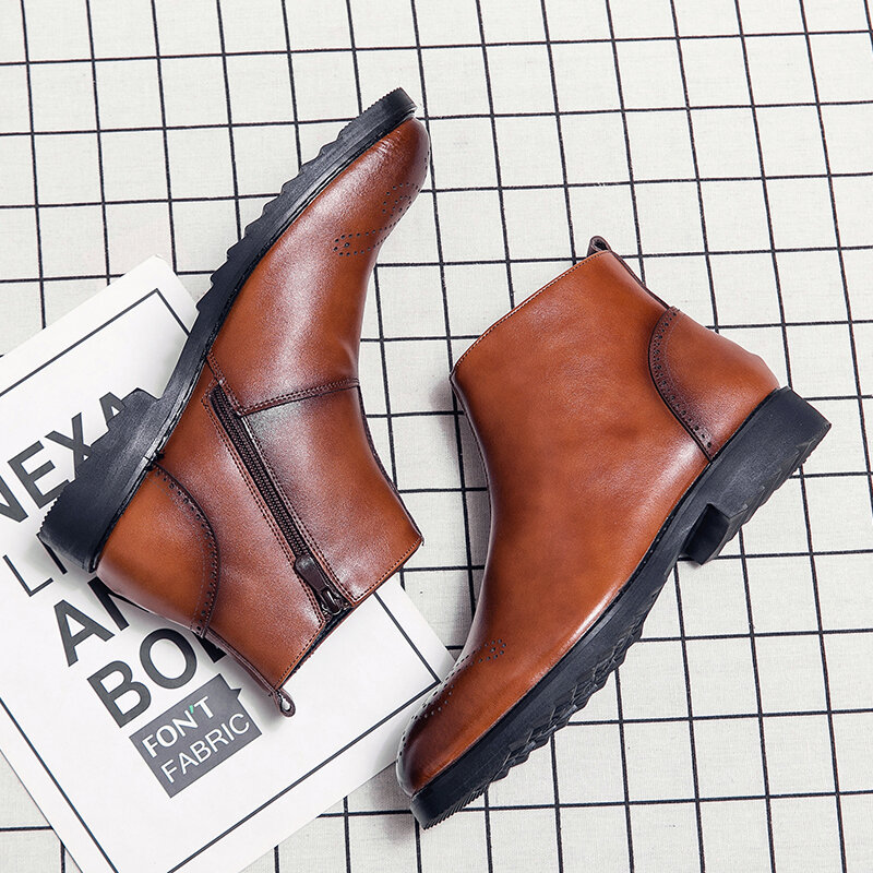 Men British Style Broguo Side Zipper Comfy Wearable Formal Ankle Boots