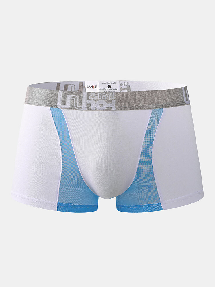 Mens Solid Color Patchwork Mesh Breathable Boxer Briefs Letter Waistband Underwear