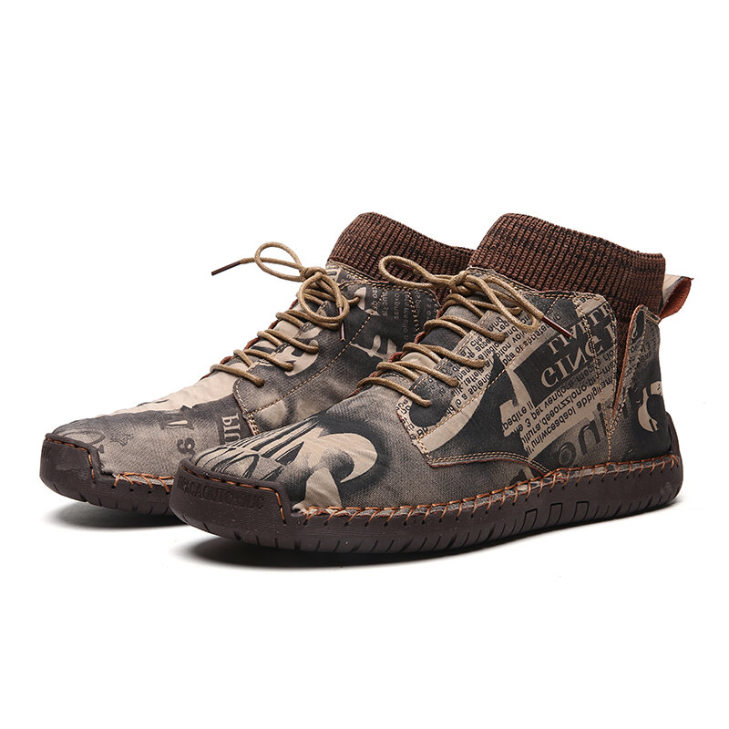 Men Handmade Stitching Warm Plush Lining Soft Sole Sock Ankle Boots