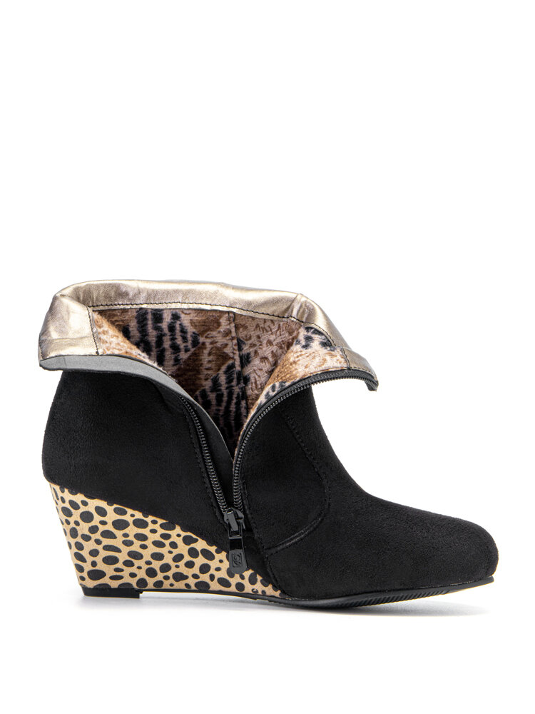 Plus Size Women Polka Dot Wedges Pointed Toe Zipper Short Boots