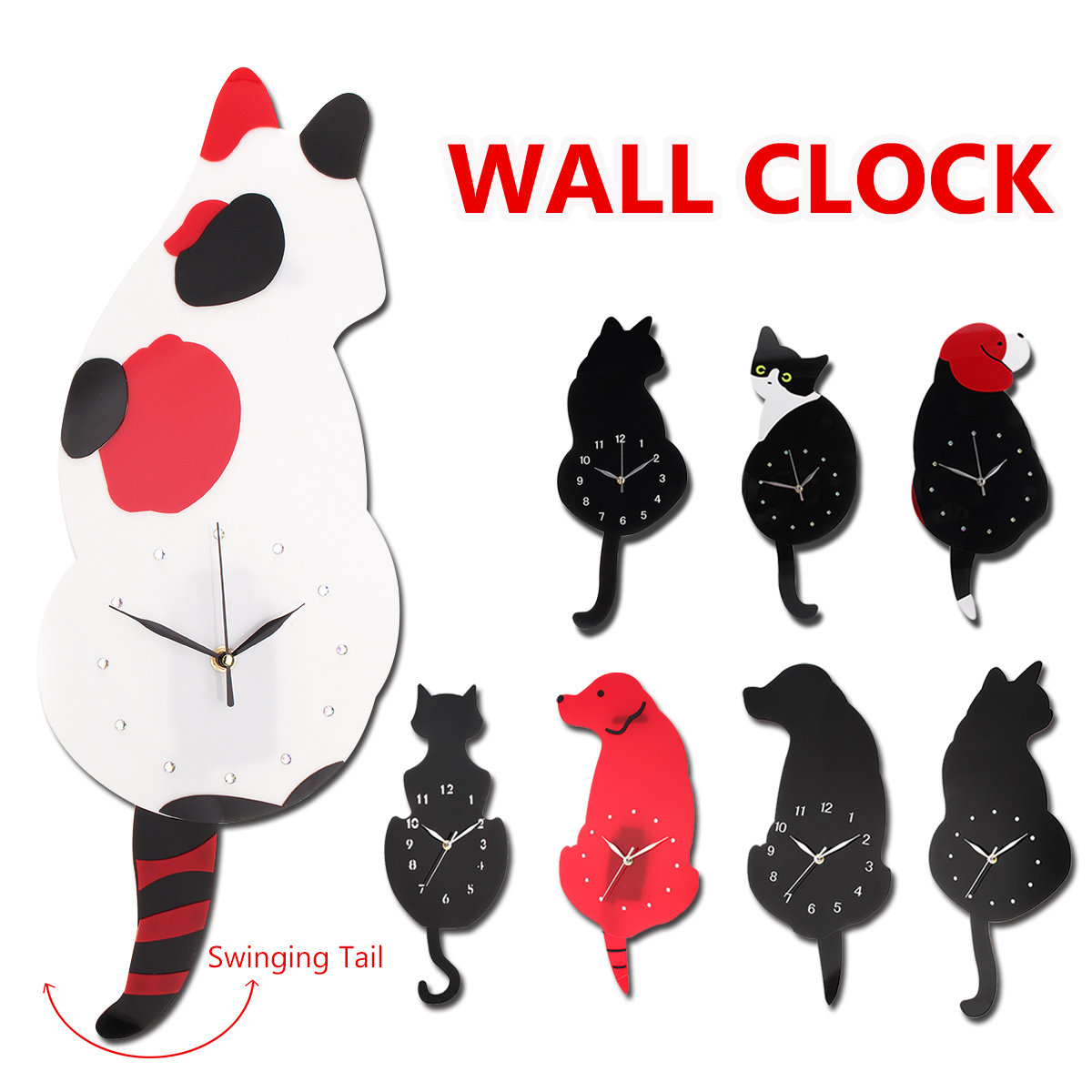 Ticking Animal Shaped Picture Wall Clock Swinging Tail Pendulum Battery Operated