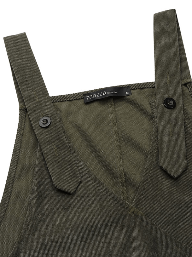 Corduroy V-neck Sleeveless Button Plus Size Jumpsuit Dress for Women