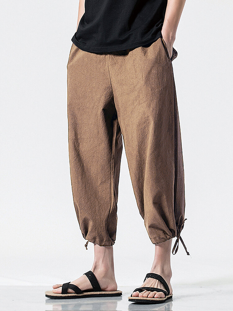 Mens Solid Color Loose Breathable Drawstring Waist Ankle Jogger Pants