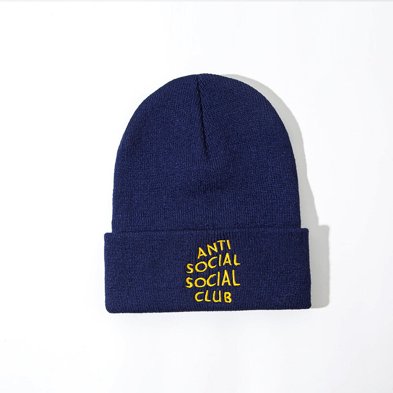 Unisex Anti-social Print Knitted Wool Hat Skull Cap Beanie With Letter
