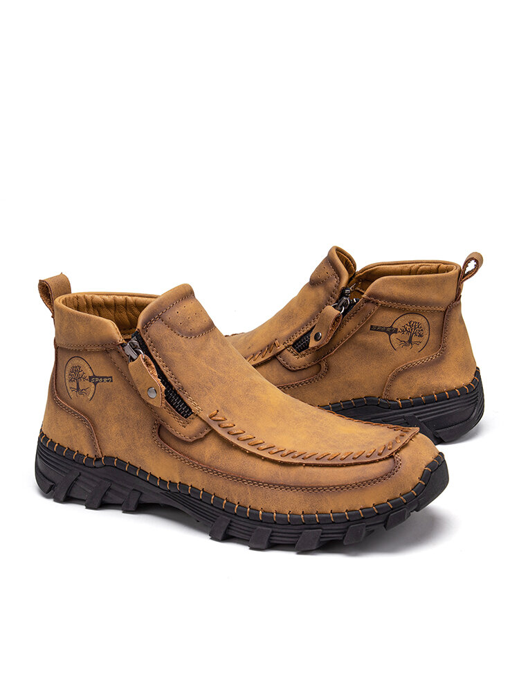 Men Hand Stitching Outdoor Slip Resistant Side Zipper Ankle Boots