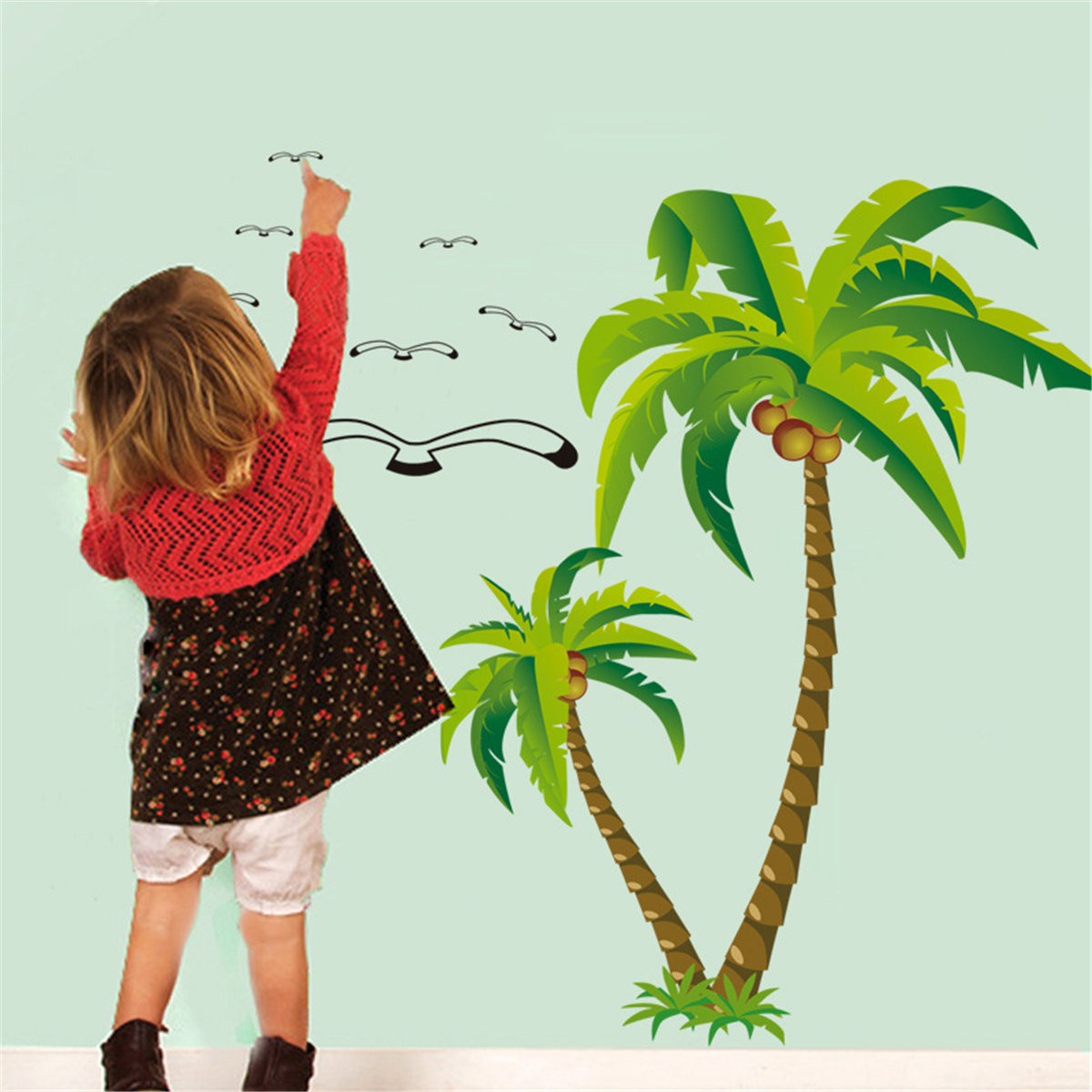 Coconut Palm Trees Seagulls Removable Wall Sticker Decal Art Mural Home Decor