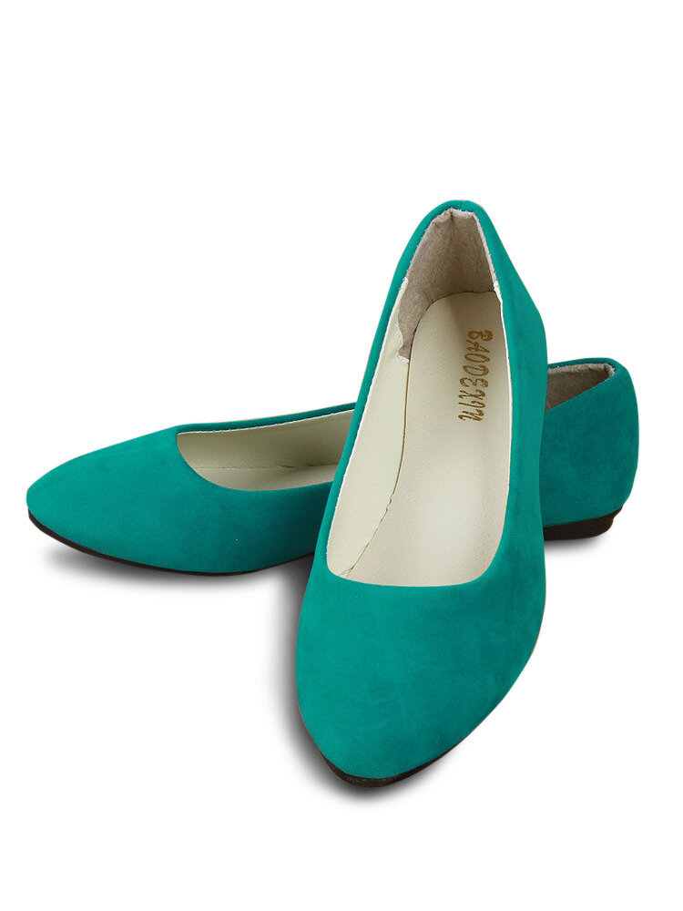 Big Size Suede Candy Color Pure Color Pointed Toe Light Ballet Flat Shoes