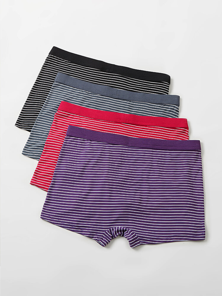 4 Pack Mens Pinstripe Breathable Underwear Modal Cozy Boxer Briefs With Pouch