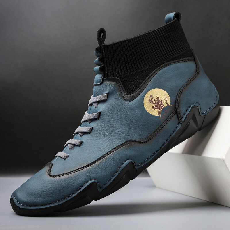 Men Hand Stitching Leather Non Slip Soft Sole Casual Ankle Boots